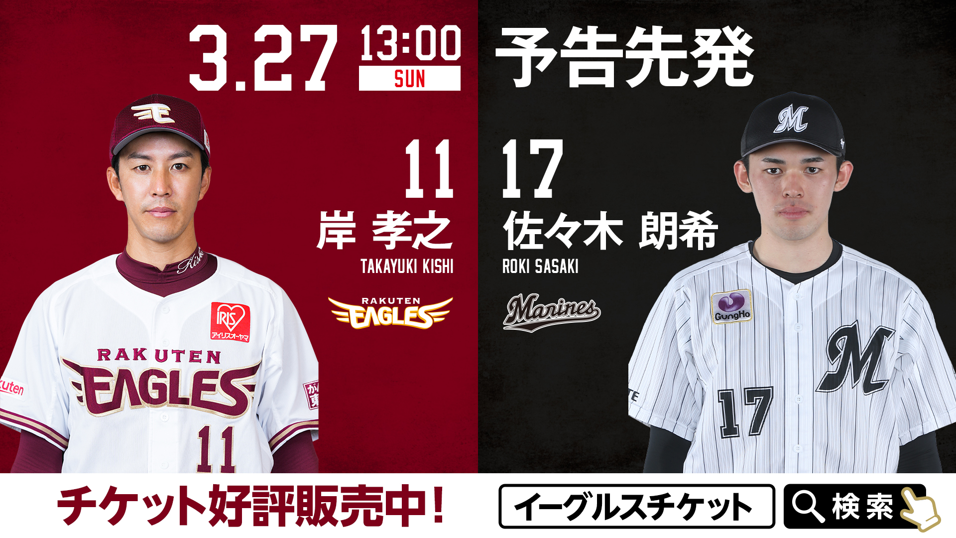 東北楽天ゴールデンイーグルス 明日の予告先発は 宮城県出身 岸孝之選手 岩手県出身 佐々木朗希選手 東北出身 の両右腕の投げ合いを是非スタジアムで チケット購入はこちら T Co Xpyhveohf6 Rakuteneagles Chibalotte T Co